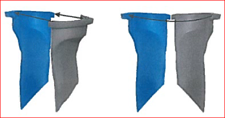 "Die bei der 2. Generation vorhandenen Stege zwischen den Streifen an deren unterem Ende führen offensichtlich dazu, dass der eine Streifen nicht über die gesamte Länge der vertikal verlaufenden Kanten getrennt ist von der Komponente (hier dem anderen Streifen). "